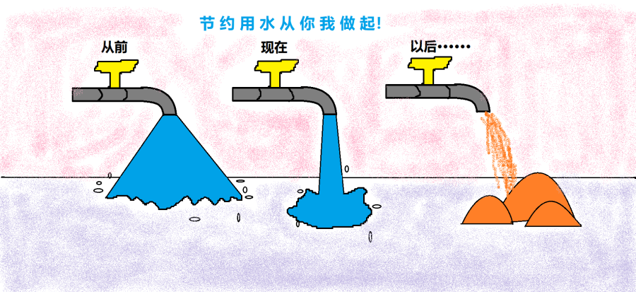 《过去、现在、未来》项目简介:水是生命之源,我们无法想象如果地球上有一天没有了水,世界会变成什么样子。而通过二年级同学的画作,我们看到了他们所设想的未来没有水的一天。当水龙头成为了“沙龙头”,当我们随处可见的水变成了一粒粒黄沙,那个时候的人们会不会特别悔恨没有节约用水的今天呢?1972年联合国人类环境会议、1977年联合国水事会议都提出了水危机不久将成为继石油危机之后另一项严重的社会危机。世界银行1995年的调查报告指出:占世界人口40%的80个国家正面临着水危机,发展中国家约有10亿人喝不到清洁的水,17亿人没有良好的卫生设施,每年约有2500万人死于饮用不清洁的水。1992年里约热内卢联合国环境与发展大会通过的《21世纪议程》中指出:水不仅为维持地球一切生命所必需,而且对一切经济问题都有生死攸关的重要意义。